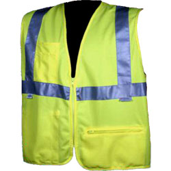 Dicke V300 Safety Vests, Class 2, Solid, Pockets, 2" Silver Stripes - Lime